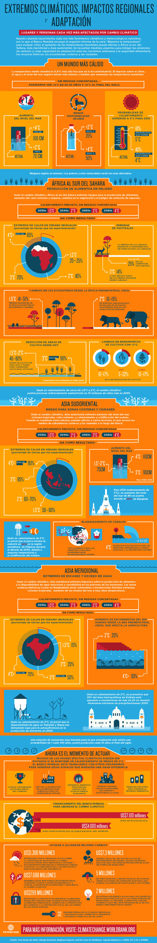 El Banco Mundial ha publicado en su sitio web, en internet, un artículo y una infografía muy interesantes sobre qué significa el cambio climático para África y Asia y los pobres que habitan en zonas costeras.